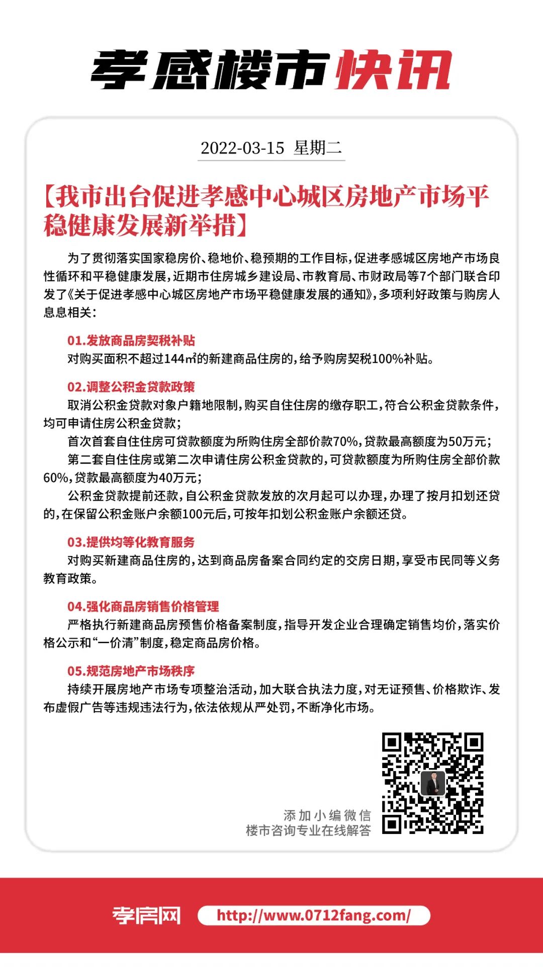 ? ? ? ? 詳細(xì)文章鏈接:孝感城區(qū)出臺(tái)多項(xiàng)購(gòu)房支持政策!首付調(diào)至2成,最高補(bǔ)貼10萬(wàn)....
