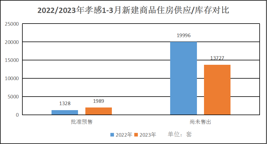 ? ? ? ?從供應(yīng)看,2023年1-3月,孝感城區(qū)新建商品住房批準預(yù)售1989套,批準預(yù)售面積22.41萬平方米,同比下降66.52%,環(huán)比下降84.07%。