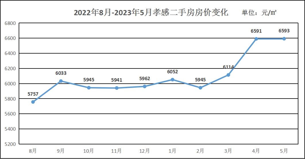 ? ? ? ?孝感二手房5月份均價(jià)6593元/㎡,環(huán)比4月(6591元/㎡)上漲0.03%,基本無(wú)漲幅。