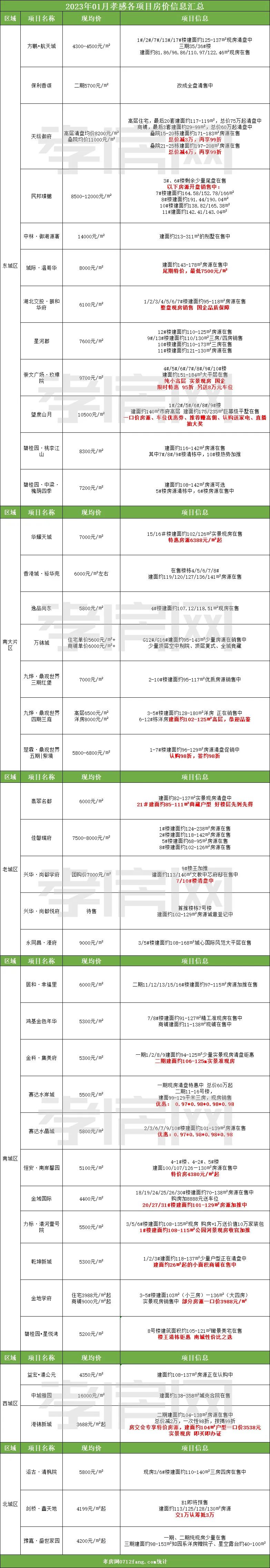 ? ? ? 1、本篇數(shù)據(jù)為不完全統(tǒng)計,新盤數(shù)據(jù)僅包含孝感主城區(qū)在售樓盤;