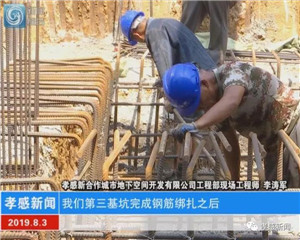現(xiàn)場(chǎng)工程師李濤軍介紹,根據(jù)工期要求,此基坑的底板鋼筋綁扎工作大約需要三天時(shí)間完成。
