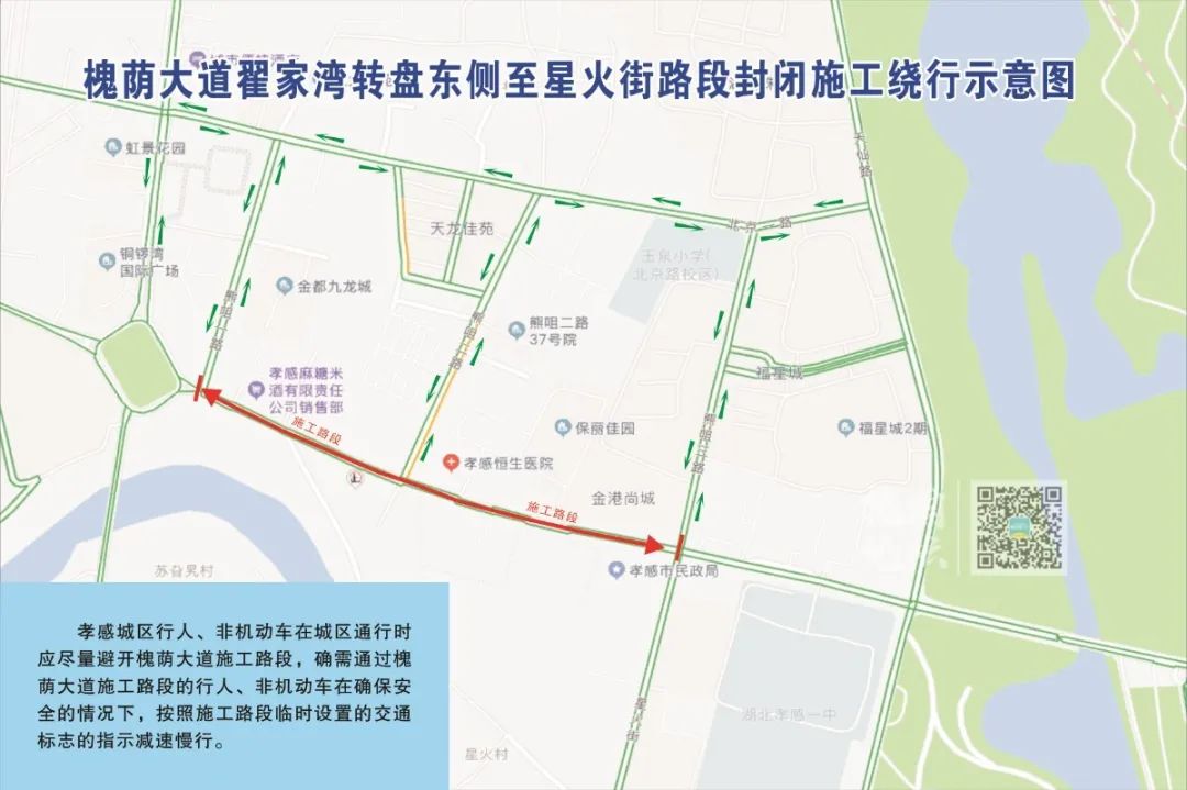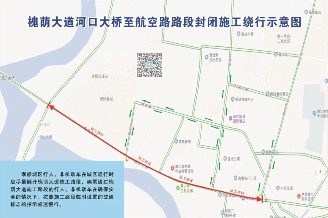 04.由武漢方向(孝武大道)過境孝感城區(qū)通行的車輛可繞行316國道、董永路、107國道(澴川路)、京港澳高速行駛;確需通過槐蔭大道施工路段通行的車輛,在確保安全的情況下,按照施工路段臨時設(shè)置的交通標(biāo)志的指示減速慢行。