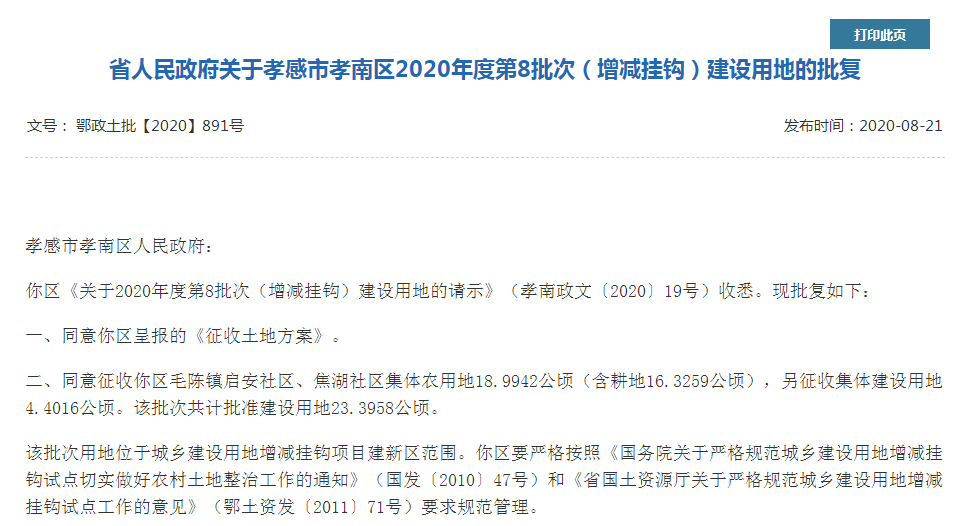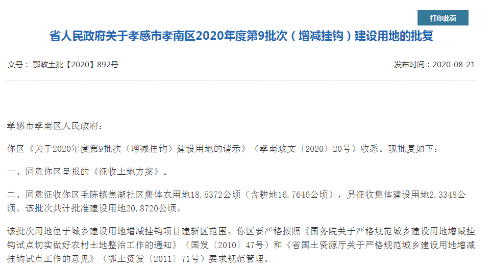 該批次共計批準(zhǔn)建設(shè)用地20.8720公頃。