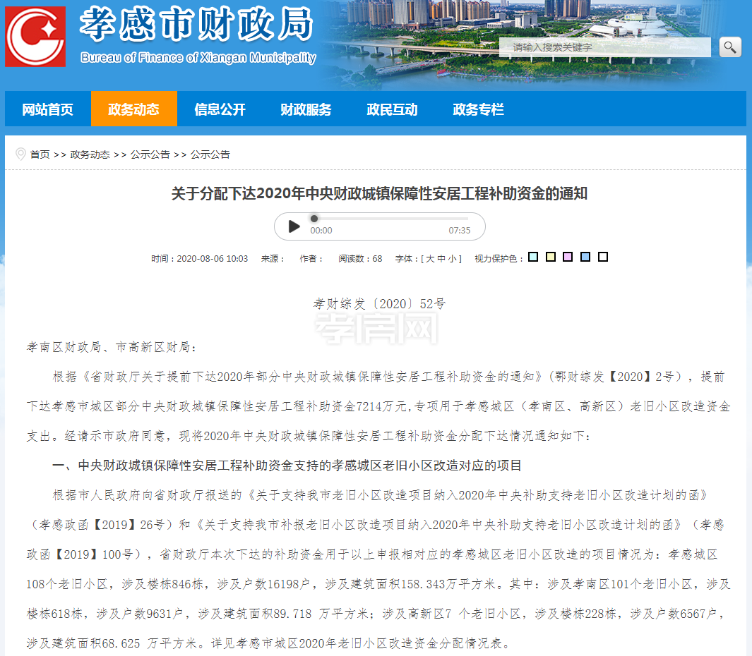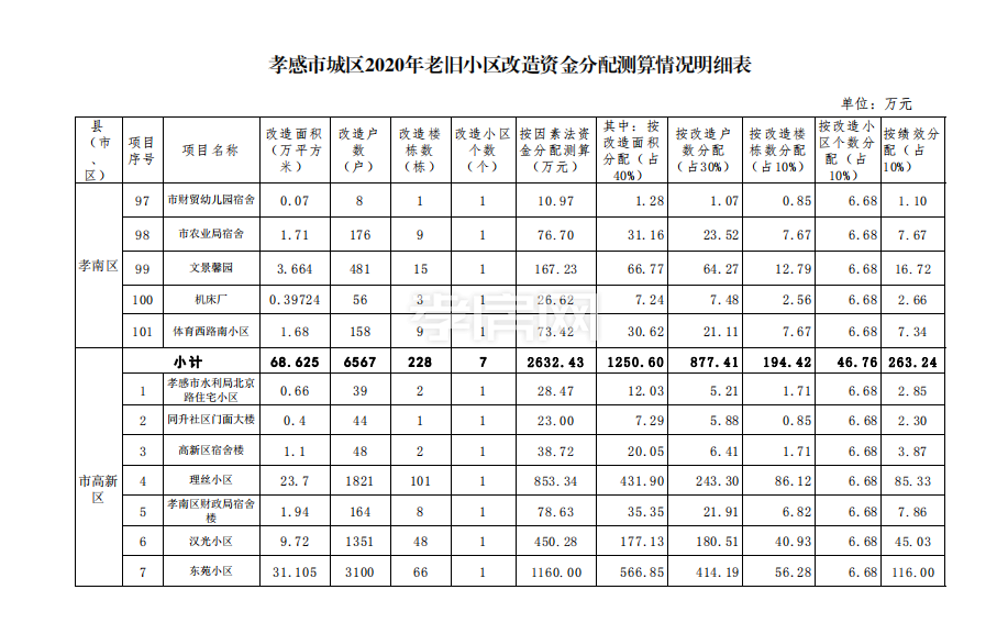 好消息!好消息!近日,孝感市財(cái)政局公布了《關(guān)于分配下達(dá)2020年中央財(cái)政城鎮(zhèn)保障性安居工程補(bǔ)助資金的通知》,你家小區(qū)能分到多少改造資金呢?一起來看看吧!