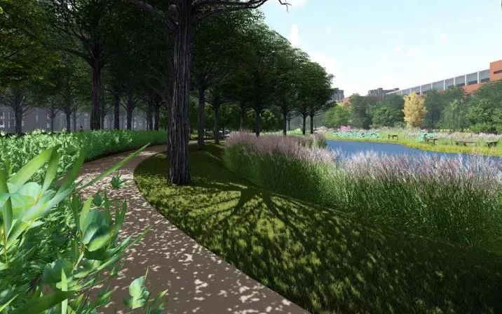 強(qiáng)調(diào)自然景觀,增設(shè)小型休閑設(shè)施及無障礙設(shè)施,為市民提供集休閑、觀光、游憩于一體的開放式公園。