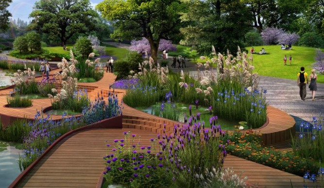 按照改擴(kuò)建方案,到2030年將全面完成,以植物景觀為主,突出彩葉,香花植物的運用,適當(dāng)增設(shè)休閑場所及設(shè)施。