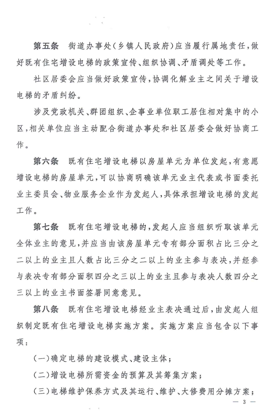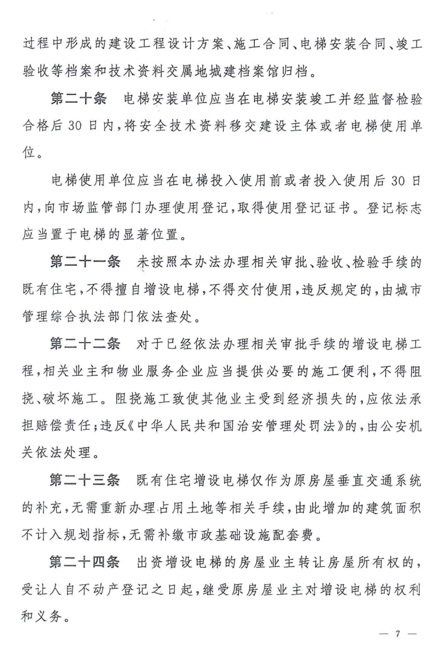城管等相關(guān)部門按照職責(zé)做好既有住宅增設(shè)電梯的管理工作。
