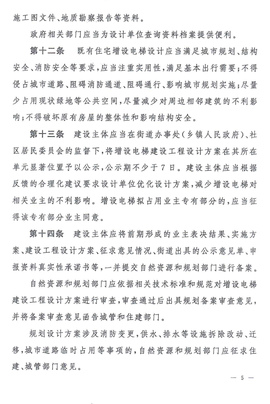 市、區(qū)自然資源和規(guī)劃部門負責(zé)既有住宅增設(shè)電梯的規(guī)劃審查工作。