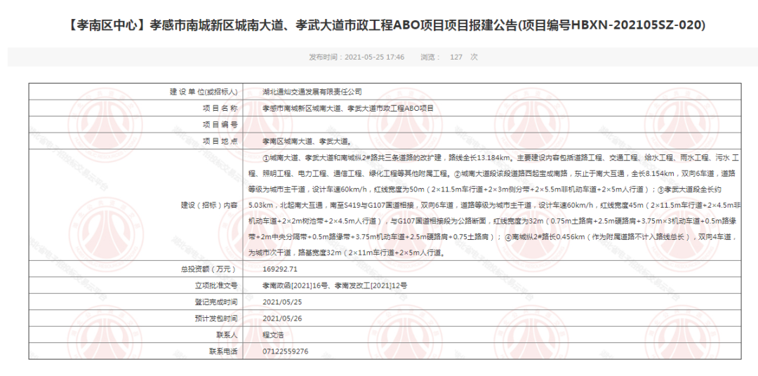 孝感市南城新區(qū)城南大道、孝武大道市政工程ABO項(xiàng)目