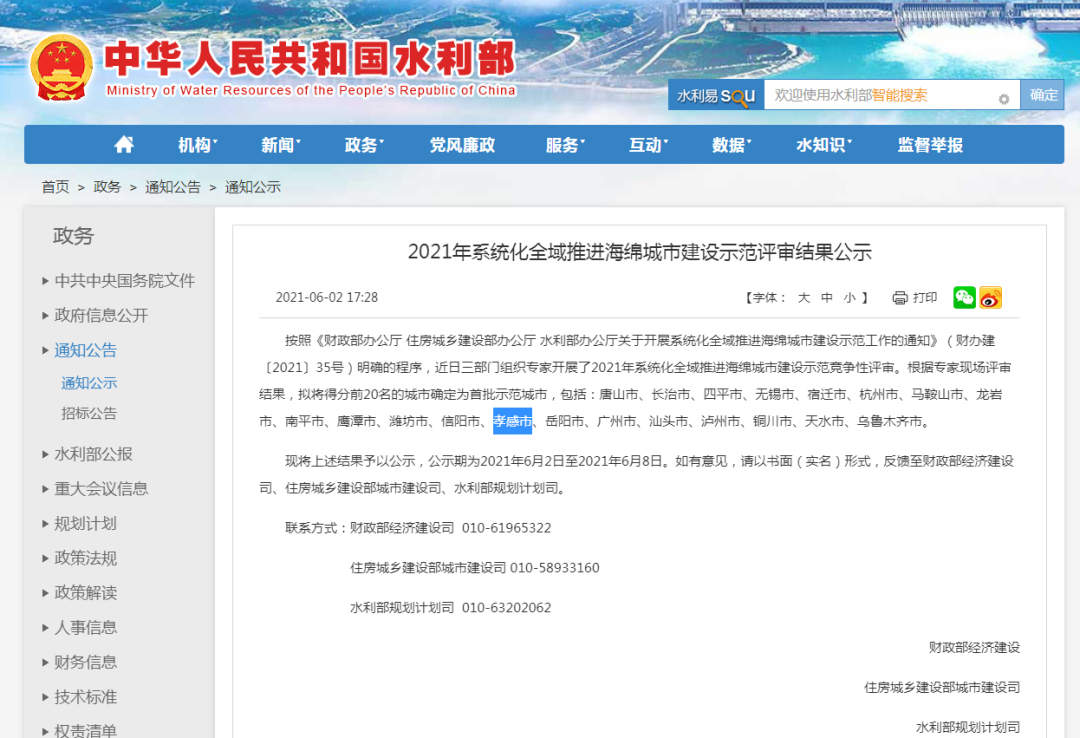? ? ? ?按照《財政部辦公廳 住房城鄉(xiāng)建設(shè)部辦公廳 水利部辦公廳關(guān)于開展系統(tǒng)化全域推進海綿城市建設(shè)示范工作的通知》(財辦建〔2021〕35號)明確的程序,近日三部門組織專家開展了2021年系統(tǒng)化全域推進海綿城市建設(shè)示范競爭性評審。