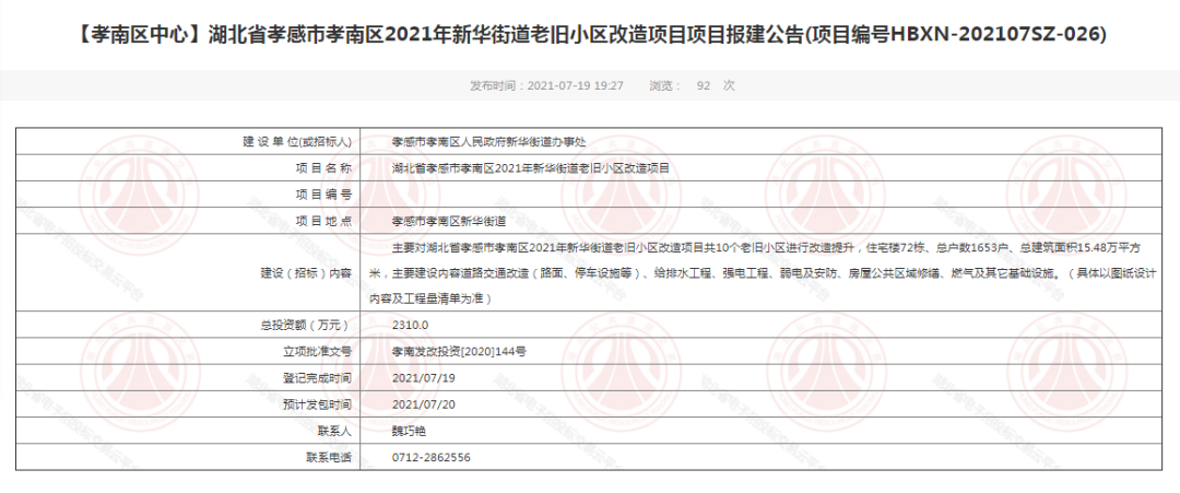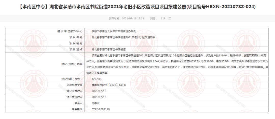 ? ? ? ?近日,孝感市、孝南區(qū)公共資源交易中心發(fā)布了一大批老舊小區(qū)改造項(xiàng)目報(bào)建公告,總額度過億!下面讓我們一起來看看吧!