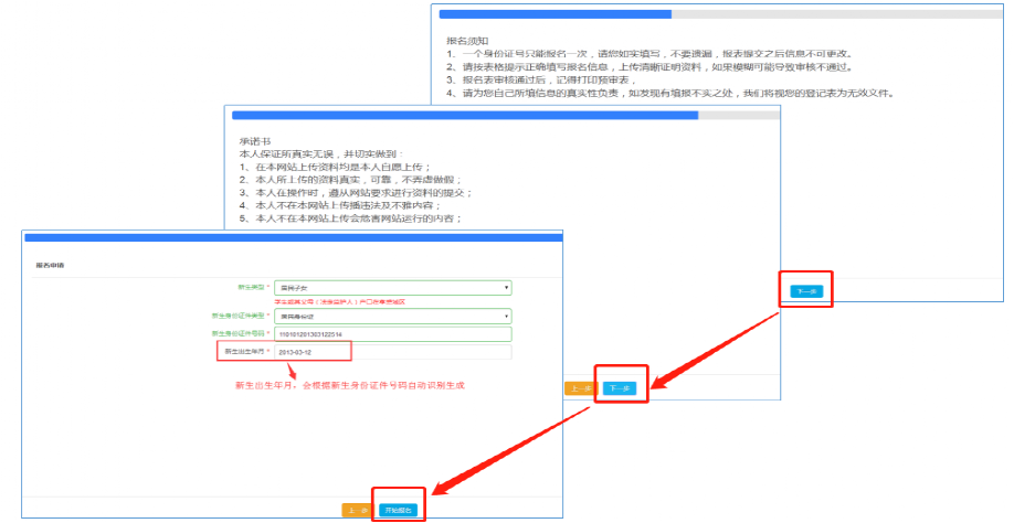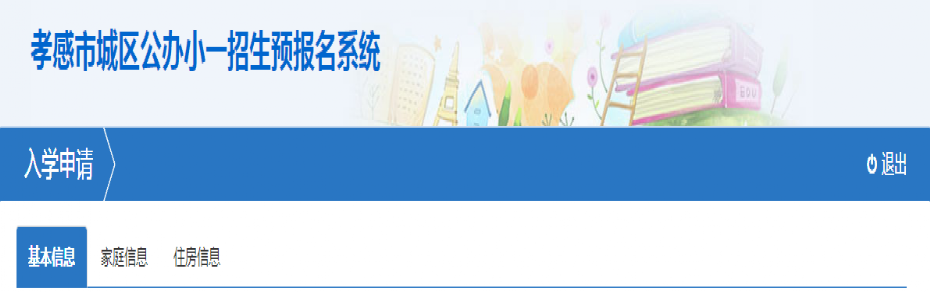 三、預(yù)報(bào)名信息填寫:查閱填報(bào)說明后點(diǎn)擊“開始報(bào)名”進(jìn)入到“入學(xué)申請(qǐng)”頁面,根據(jù)“入學(xué)申請(qǐng)”頁面:基本信息>>家庭信息>>住房信息依次填寫。