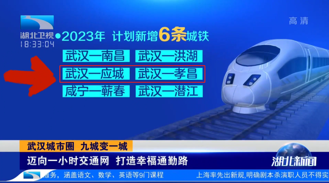 2023年,武漢城市圈計(jì)劃新增六條城鐵,其中包含武漢—應(yīng)城、武漢——孝昌。