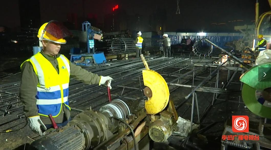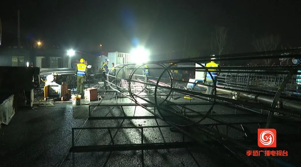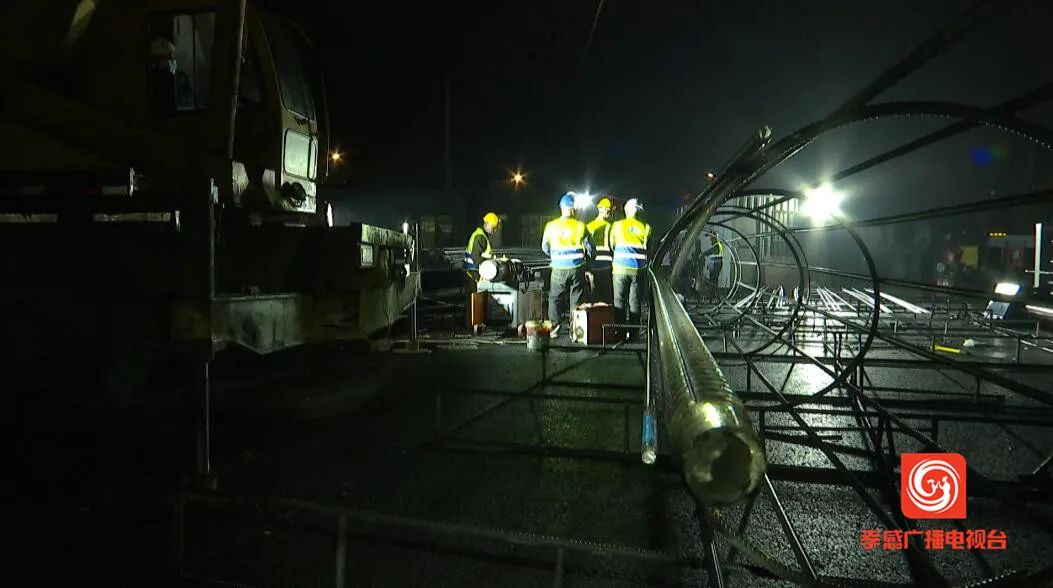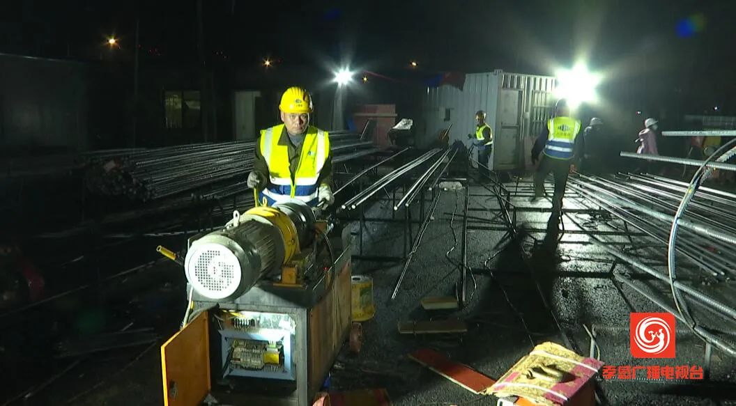 ? ? ? ?2月16日晚8點(diǎn)半,在寶成南路橋項(xiàng)目施工現(xiàn)場,十多名施工人員正冒著小雨加緊制作鋼筋籠,為橋梁基礎(chǔ)及下部結(jié)構(gòu)施工做準(zhǔn)備。
