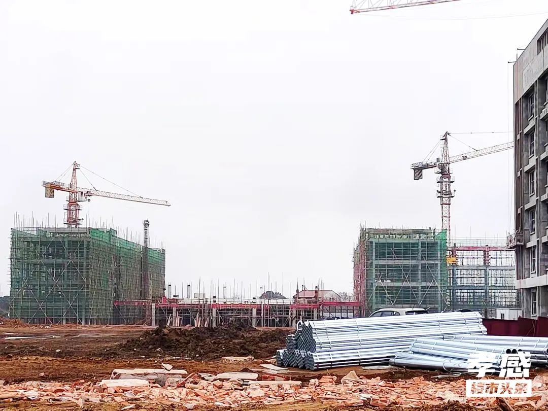 ? ? ? ?靠近規(guī)劃停車場區(qū)域的教學(xué)樓即將封頂,再后面的建筑因為視線受阻未看清,