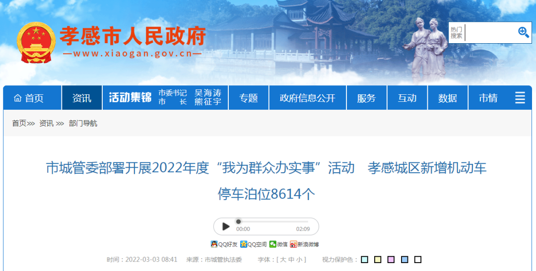 ? ? ? ?內(nèi)容有孝感城區(qū)新增機(jī)動(dòng)車停車泊位8614個(gè)、新建口袋公園22個(gè),整治背街小巷23條、升級(jí)改造生活垃圾分類投放收集點(diǎn)(站)1006個(gè),計(jì)劃所有項(xiàng)目于今年年底前完成。