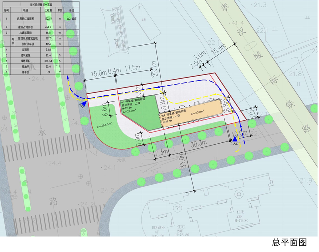 ? ? ? ?占地面積454.2㎡,總建筑面積5531㎡,共規(guī)劃停車位164個(gè)。