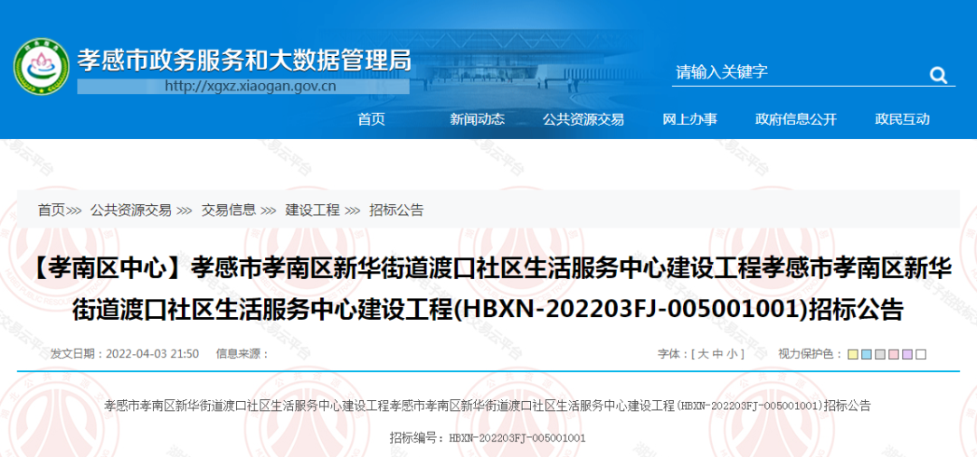 孝感市發(fā)布一則招標公告