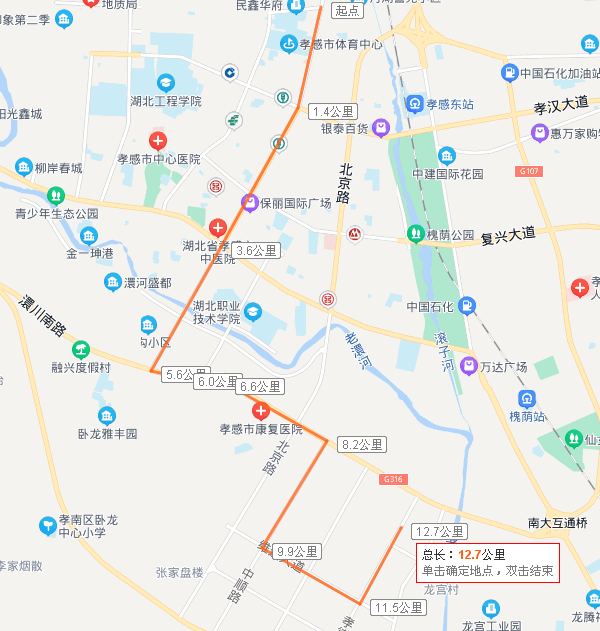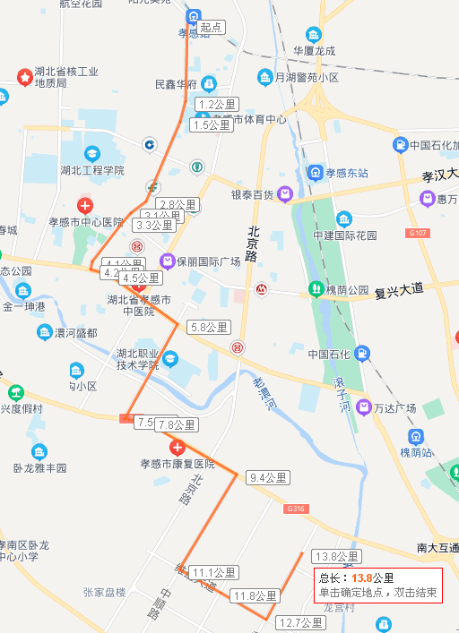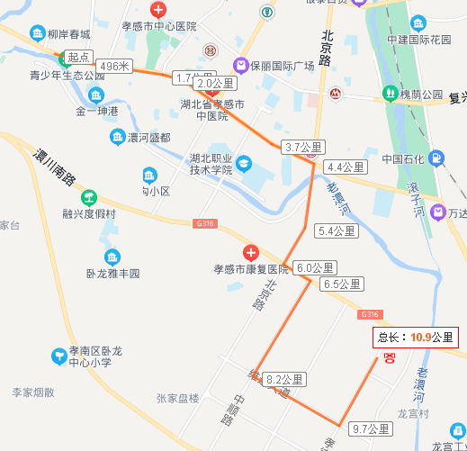 毛陳鎮(zhèn)—孝武大道—槐蔭大道—北京南路—澴川南路—中順路—維達(dá)大道—孝德路(全長(zhǎng)約15公里)