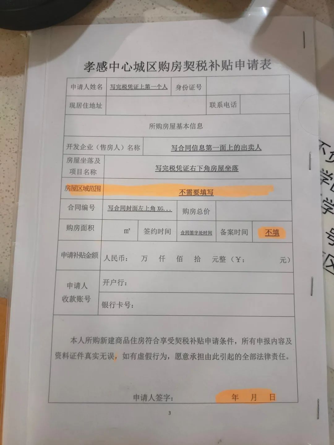 ? ? ? ?繳完契稅后再回到24號窗口排隊(duì)退契稅,領(lǐng)取契稅補(bǔ)貼,按照下圖要求填寫表格。