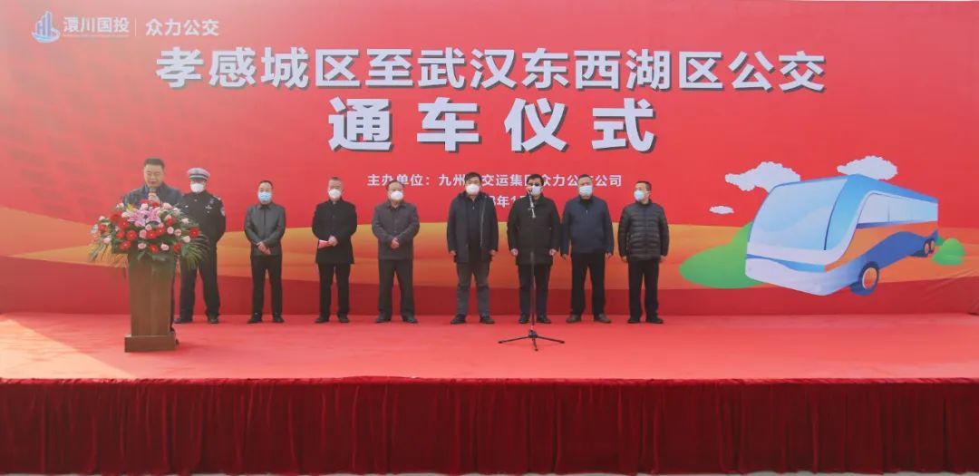? ? ? ?1月11日上午,孝感城區(qū)至武漢東西湖區(qū)城際公交開通儀式在線路首末站場站內(nèi)舉行。漢孝兩市政府和交通運(yùn)輸管理部門、澴川國投等單位相關(guān)領(lǐng)導(dǎo)出席開通儀式。