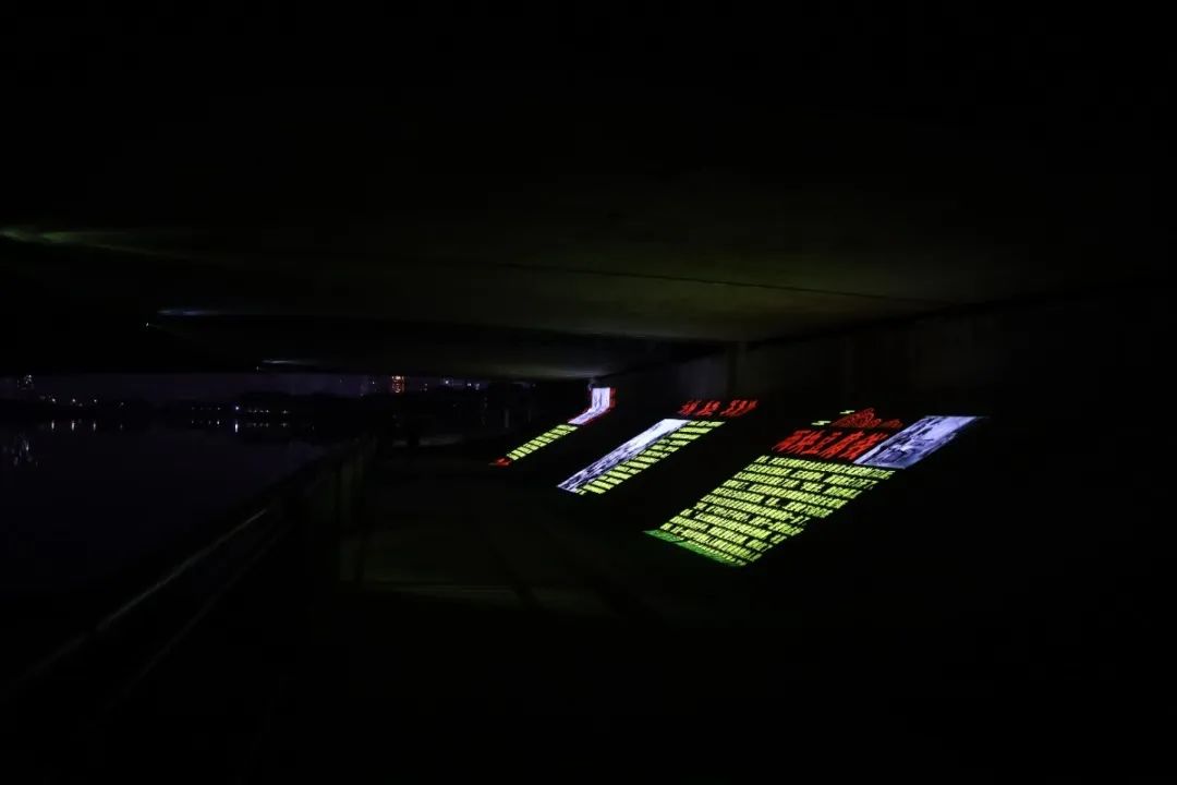? ? ? ?為打造步道的全閉環(huán)路線,還將原先的主干道地面平交,改建為親水棧道橋下穿行,并利用橋面斜坡,打造了紅色孝感主題宣傳墻,以動態(tài)投影為市民講述孝感的紅色文化發(fā)展歷程。
