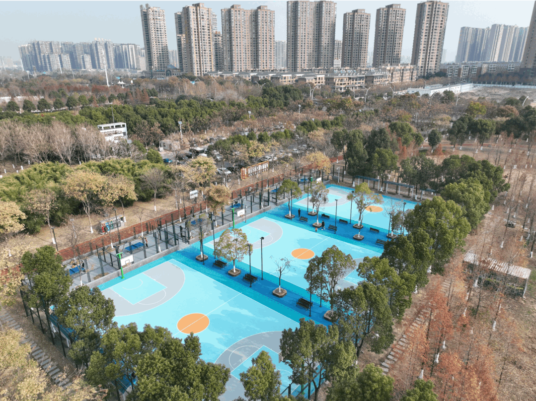 ? ? ? ?綜合活動健身區(qū)解決了原有場地的高低差問題,并重新梳理了功能分區(qū),翻新了球場與健身器材。創(chuàng)意的地面造型、絢麗的色彩,多維度營造出具有藝術(shù)感的活力場地。