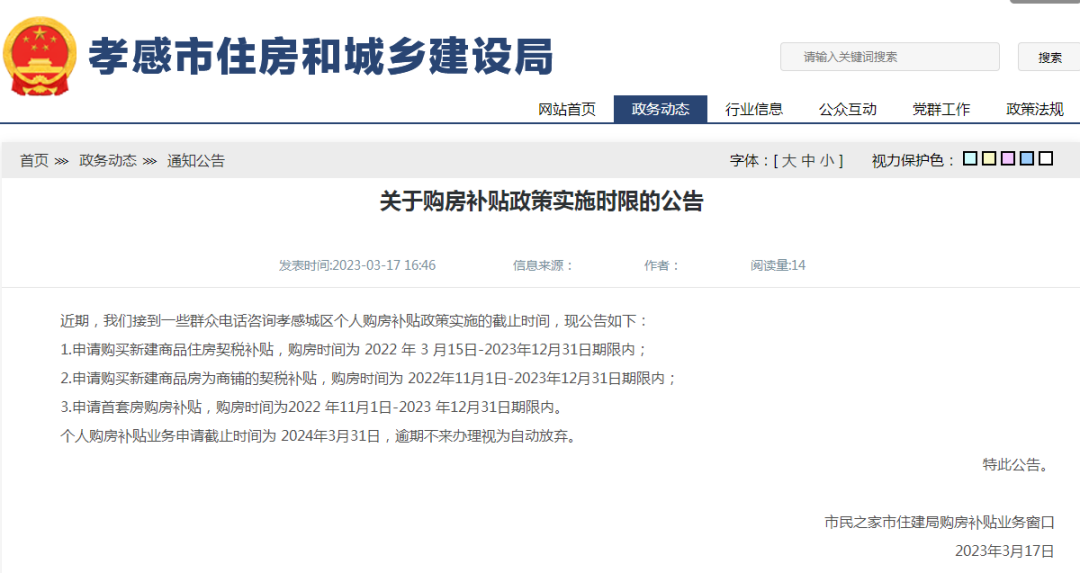 ? ? ? ?近期,我們接到一些群眾電話咨詢孝感城區(qū)個(gè)人購(gòu)房補(bǔ)貼政策實(shí)施的截止時(shí)間,現(xiàn)公告如下: