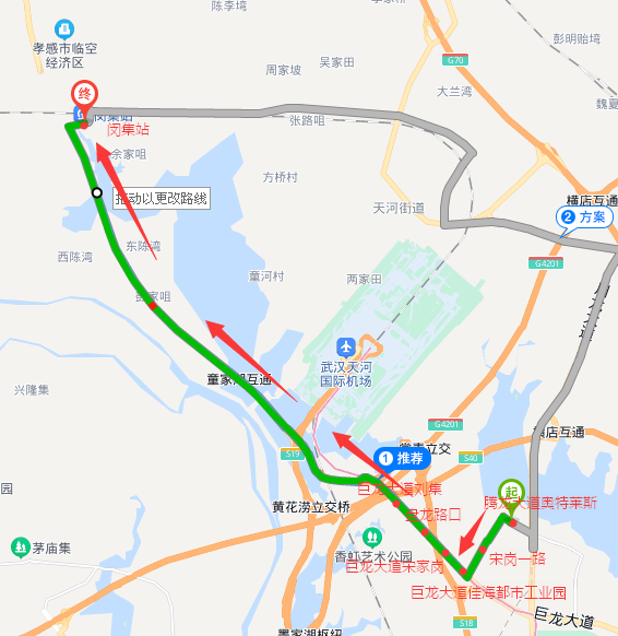 ? ? ? ?孝漢大道道興社區(qū)-白水湖大橋-巨龍大道-宋崗一路-百聯(lián)奧特萊斯