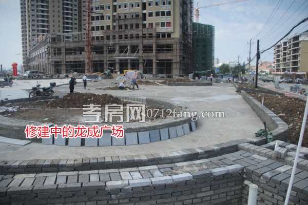 小區(qū)門口的龍城廣場(chǎng)正在修建中