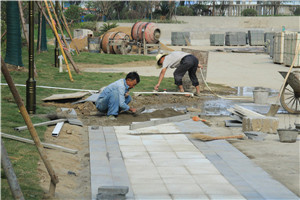 項(xiàng)目動(dòng)態(tài):小區(qū)正在修建綠化,地面正在鋪磚中。