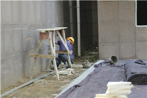 工人正在鋪地磚