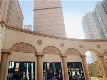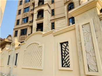 西側(cè)圍墻砂巖,鋁藝欄桿已經(jīng)完成,正在安裝grc線條。北側(cè)圍墻grc線條,鋁藝欄桿安裝完成,正在進(jìn)行涂料施工。