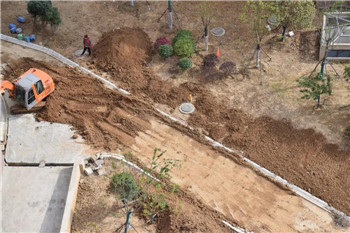 園林景觀工程正在施工,喬木種植已經(jīng)完成,正在進(jìn)行草坪種植