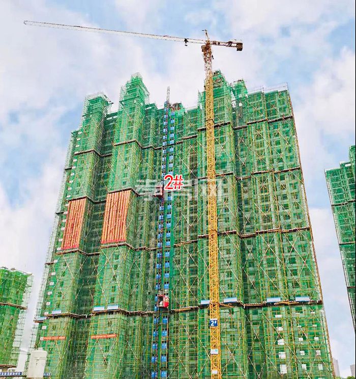 項目進度:1#樓建至約13層,2/3/4/5#樓正在建外立面。