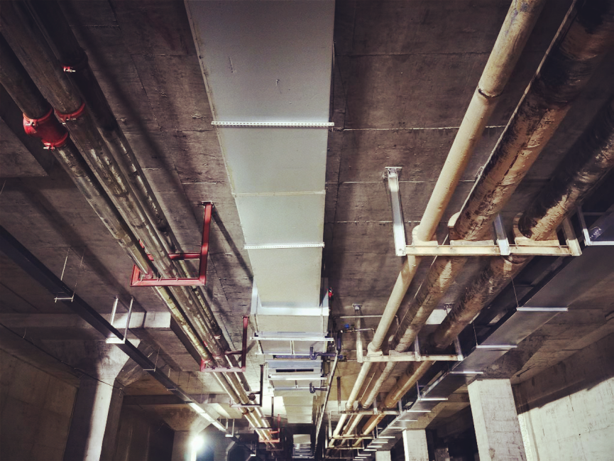 A-E區(qū)新風(fēng)系統(tǒng)和空調(diào)管道已完成安裝。