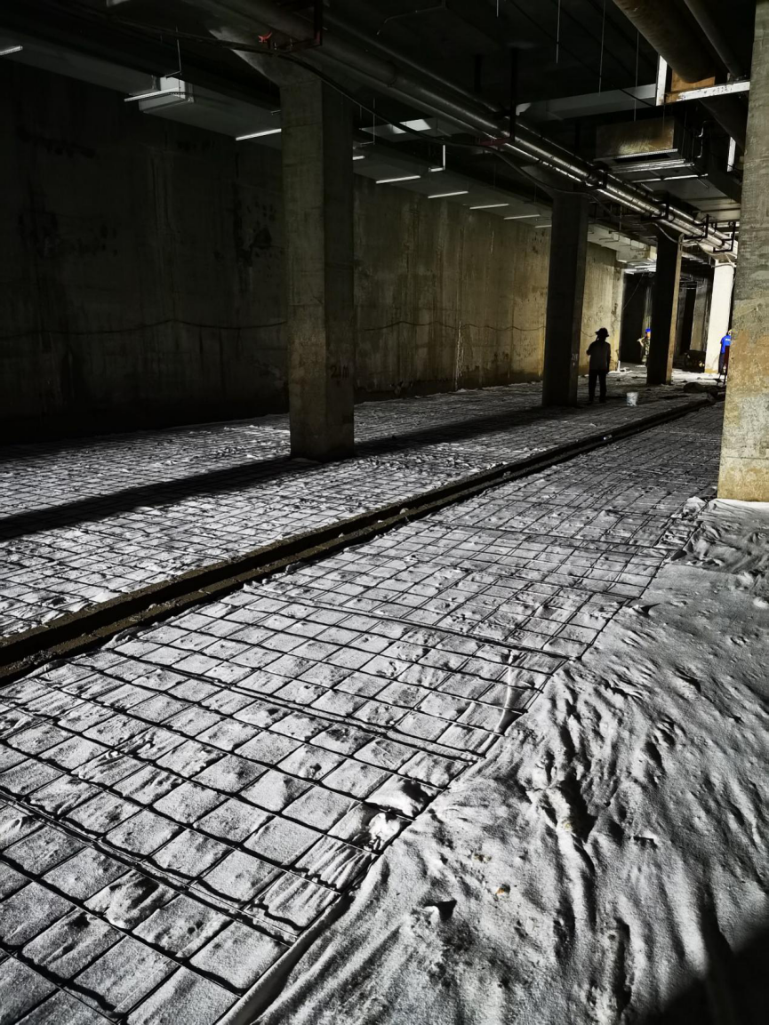 A區(qū)地面硬化前的濾水層鋪設(shè)工作。