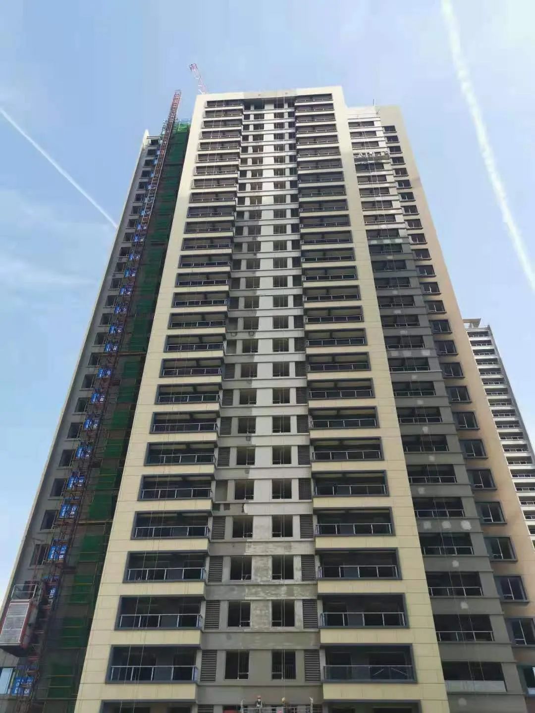 ? ? ? ?項(xiàng)目進(jìn)度:1#樓外抹灰完,2/3#樓外立面完成20%,4/5#樓建至20層,6#樓外墻膩?zhàn)邮┕ね瓿桑?#樓涂料施工完成,8#樓內(nèi)抹灰完成30%