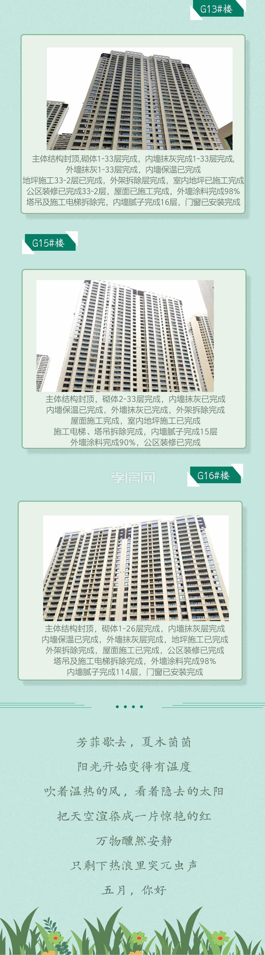 ? ? ? ?人間五月芳菲至,桃李春風(fēng)竟相開,肩負(fù)您的信任與期許,我們將對生活的熱愛注入一磚一瓦中,家的模樣逐漸清晰,清風(fēng)來信,“家”音如期至,為您呈上項(xiàng)目5月最新工程播報,邀您一起見證“家”的成長。