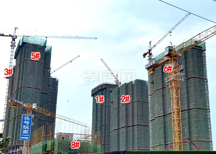 1/3#樓已封頂,2#樓已建至24層左右,5#樓已建至28層左右,6#樓已建至25層左右,8#樓建至2層左右
