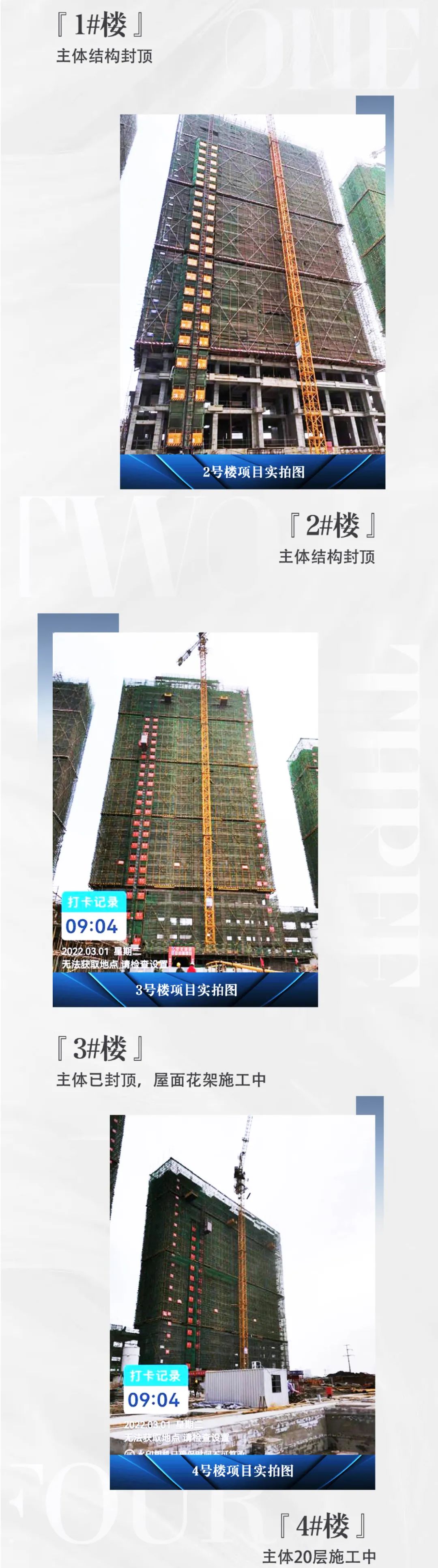 鴻基金色年華3月進度:1#/2#/3#樓主題結構已封頂