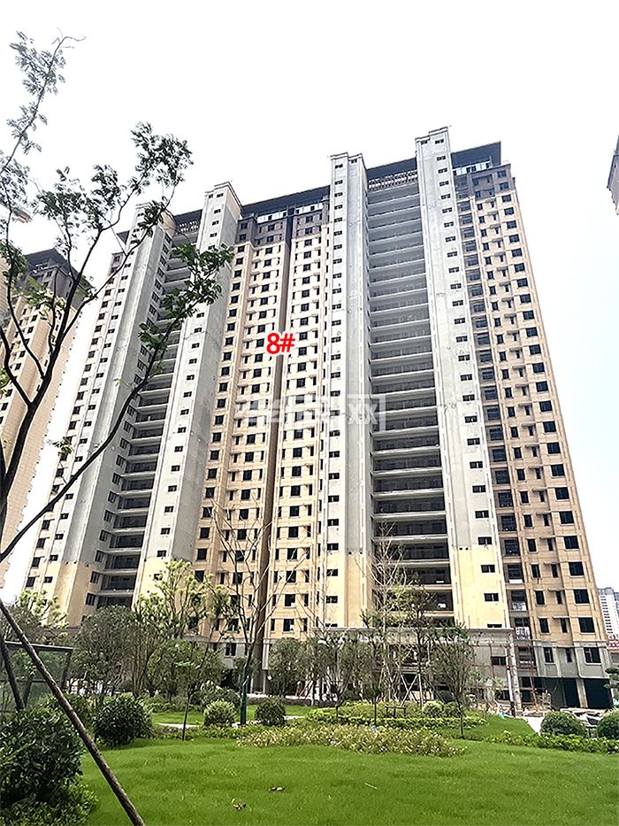 8#樓外立面已經(jīng)完工,1/2樓的腳手架還未完全拆除