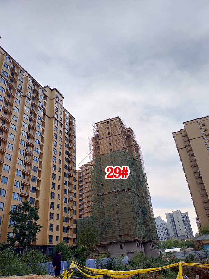 ? ? ???項(xiàng)目進(jìn)度:三期28#/29#樓已封頂,28#樓腳手架已拆至7層,29號(hào)樓腳手架已拆至15層,22#樓建到13層。