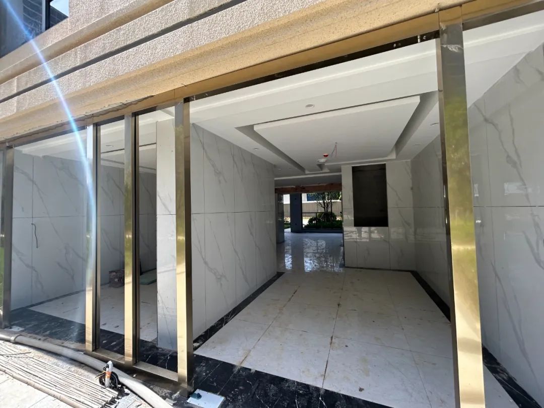 玻璃安裝已完成,入戶大堂精裝正在施工。