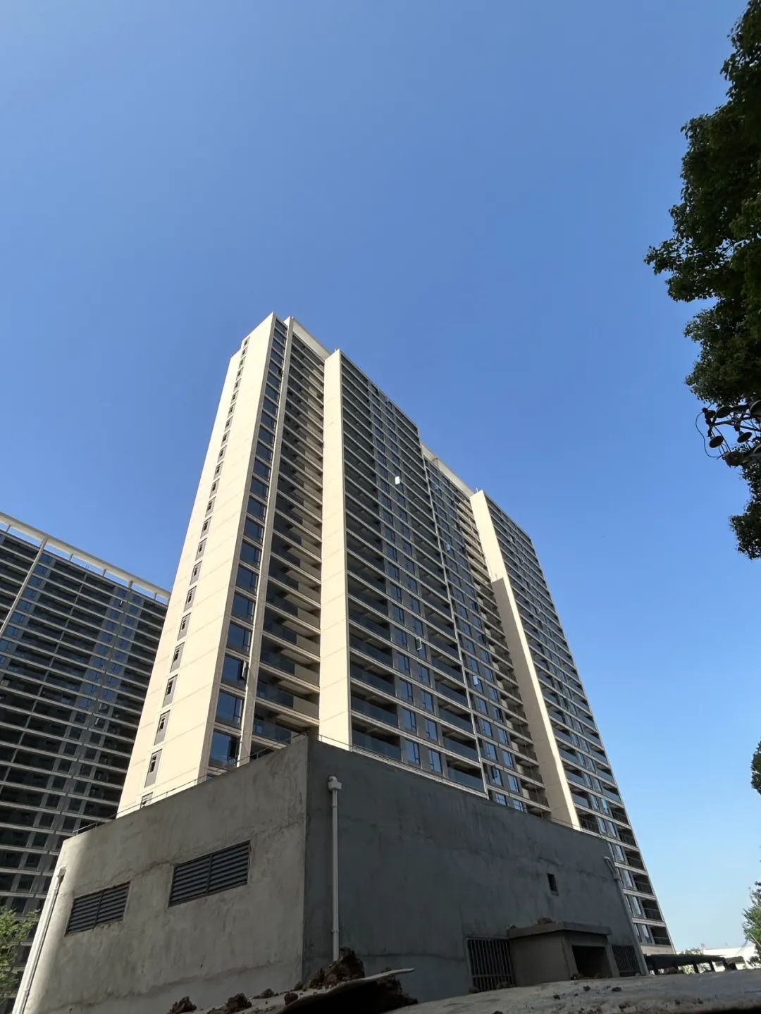 主體結(jié)構(gòu)已封頂,外墻粉刷已完成,窗框安裝已完成