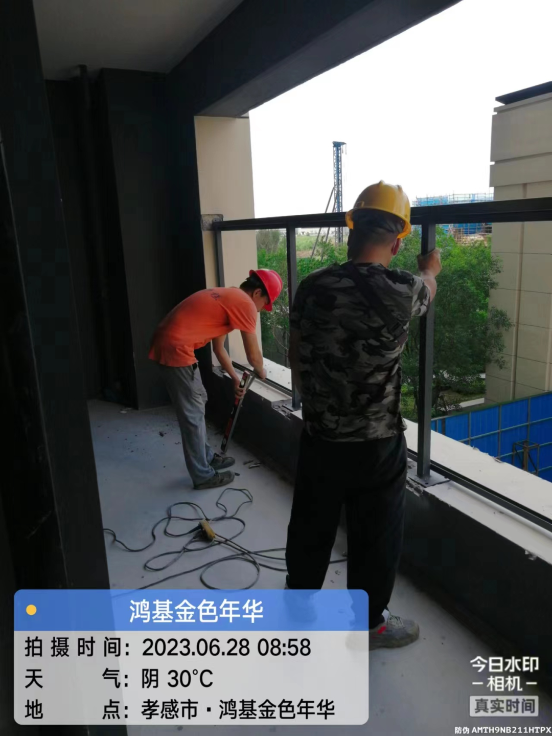 5號(hào)樓西單元陽(yáng)臺(tái)欄桿安裝、一層大廳窗砌墻