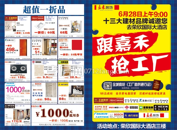 6月28號上午9點,十三大建材品牌誠邀您去榮欣國際大酒店。