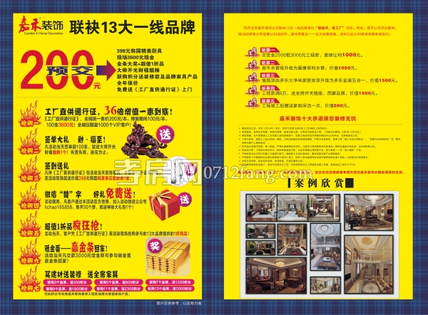 熱烈慶祝嘉禾裝飾公司聯(lián)袂13大一線品牌舉辦“跟嘉禾,搶工廠”活動,此,嘉禾公司活動期間,除活動原有讓利優(yōu)惠讓利活動外,嘉禾再推出——五大鉅惠措施,全力以赴讓利孝感消費者朋友們。