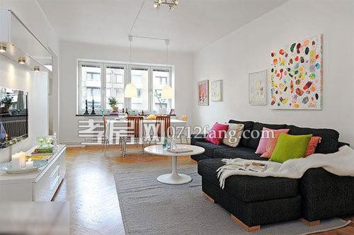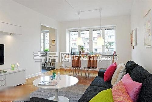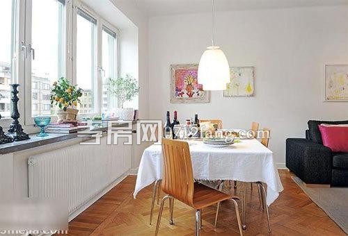 宜家小戶型樣板:足夠大的沙發(fā),餐桌,原木色的地板。