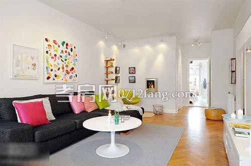 宜家小戶型樣板:照片墻、和裝飾畫給白色的墻面顏色添了很多活力。